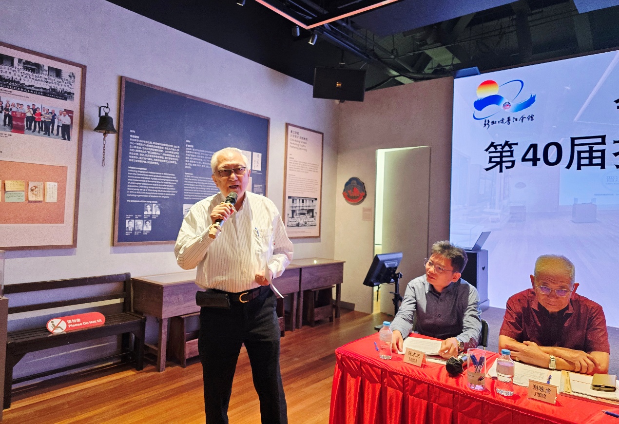世晋总创会会长、本会名誉顾问蔡锦淞乡贤以“永葆初心、创新突破、力求上进”勉励全体同仁。他指出,会员大会既是总结过往、凝聚共识的平台,更是展望未来、擘画蓝图的重要契机。蔡顾问对会长及执委团队过去一年的优异表现给予高度肯定,并赞扬青年团在轮值六间泉属青年团总团长期间表现出色;同时,晋江廊与互助部亦各展所长,成果可圈可点。展望未来,新一届执委会将肩负重任,筹备会馆110周年庆典暨世晋总轮值国等重大活动。在文化传承方面,除持续推进《江河情缘》出版工作外,亦期望启动《晋江丛书》编纂计划,进一步弘扬晋江精神,厚植乡情文脉。