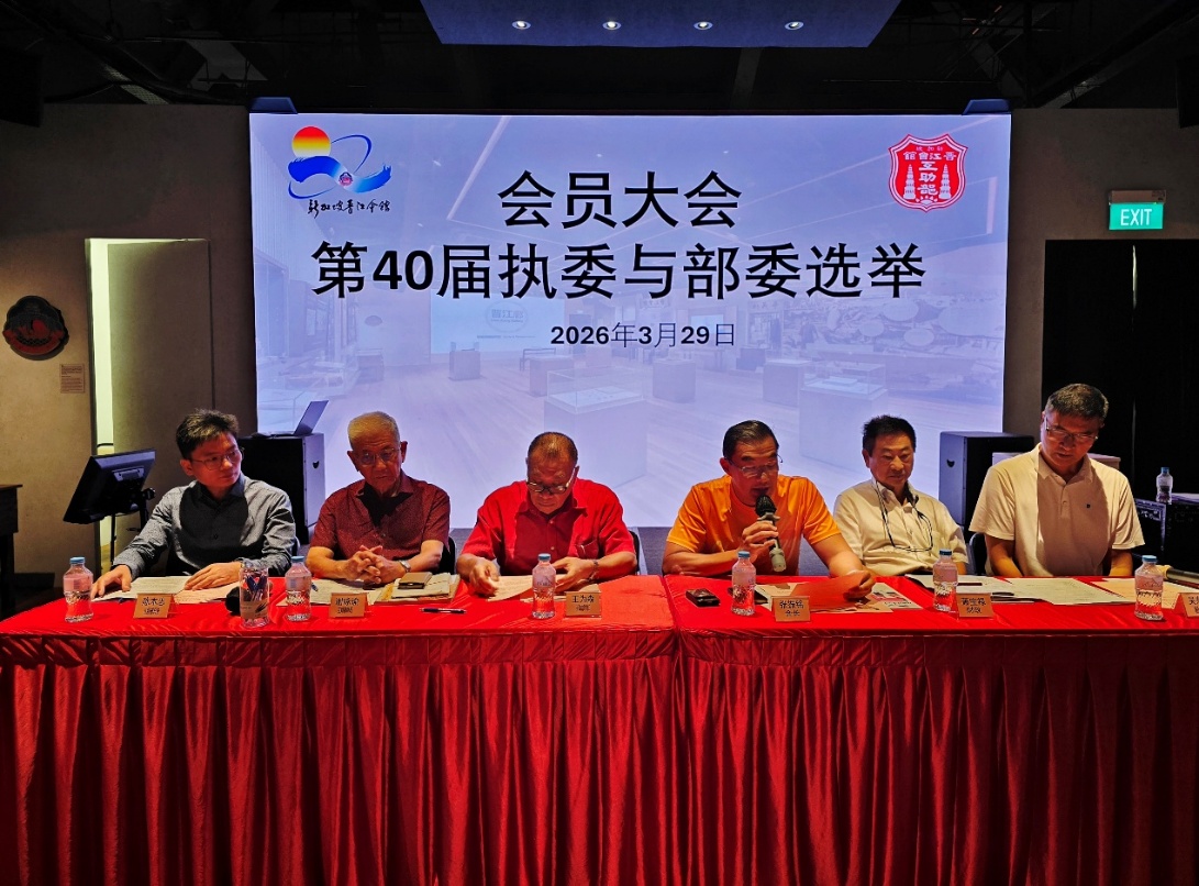 2026年3月29日(星期日)上午11时,新加坡晋江会馆在礼堂召开会员大会暨换届选举,50名会员出席,场面庄重而热络。大会在会长与互助部主任先后致词中拉开序幕,随后各组主任依次汇报2025年度会务与活动概况,内容充实,成果斐然。大会亦一致通过会馆与互助部2025年度财政报告,并委任审计公司及会馆正、副查账,体现会务运作规范严谨、制度健全。