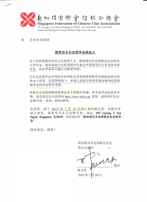推荐宗乡总会奖学金候选人